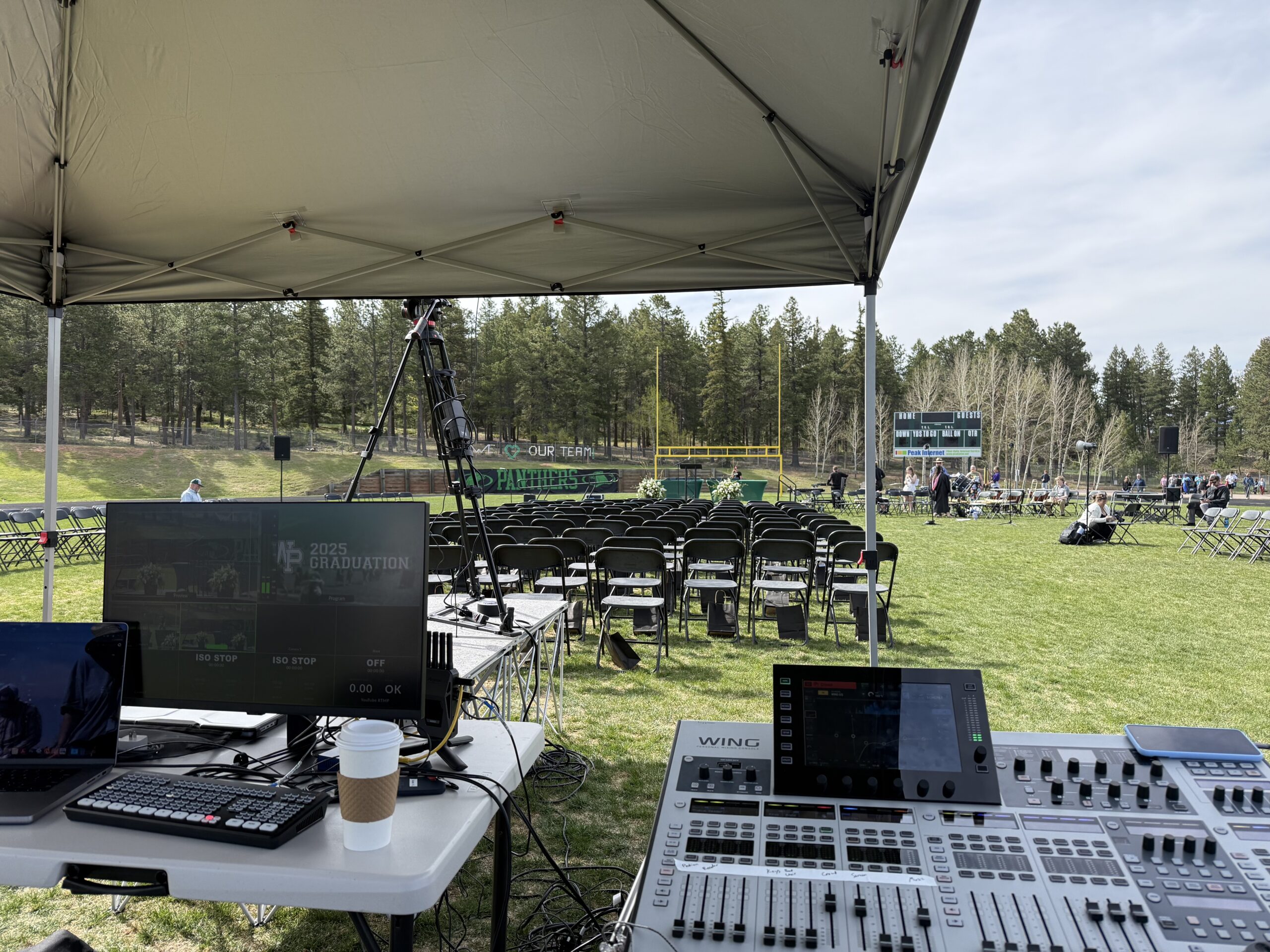 We were pleased to be asked to support and livestream the Woodland Park High School graduation of 2025. We ensured high quality audio could be heard clearly from the speeches, band and choir across the whole audience in the bleachers and on the field. We also aimed to capture the graduation so that family and friends watching from home felt like they were there and apart of the celebration.
